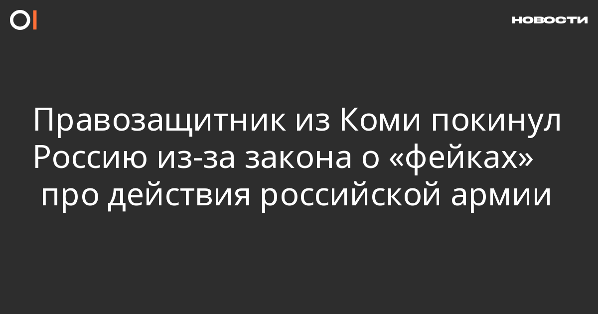 Сыктывкарский юрист Эрнест Мезак уехал из России из-за закона о «фейках» про действия российской армии. Об этом сообщает SOTA со ссылкой на телеграм-канал правозащитника.