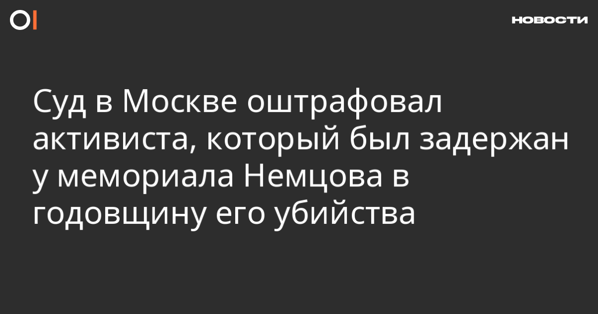 Кузьминский районный суд Москвы оштрафовал на 20 тысяч рублей активиста Максима Пахомова, который был задержан у мемориала Бориса Немцова в годовщину его убийства 27 февраля. Об этом он сам сообщил ОВД-Инфо.