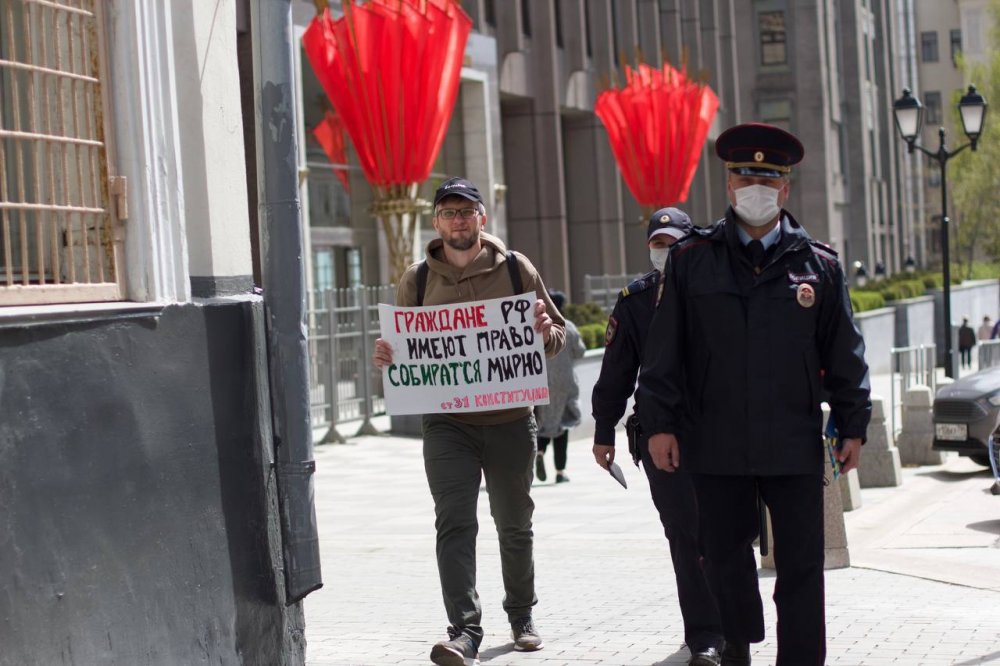 Маштаков стоял с плакатом «Свободу СМИ и политическим заключенным». Из отдела полиции «Китай-город» пикетчик вышел с протоколом по статье о нарушении правил участия в публичном мероприятии (ч. 5 ст. 20.2 КоАП).