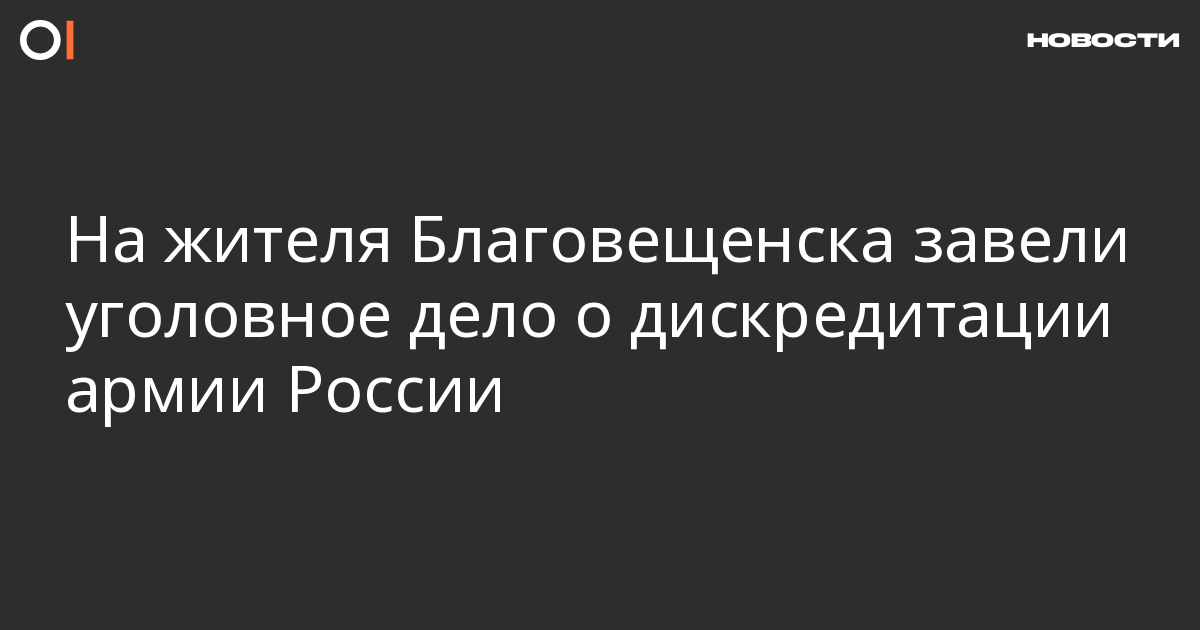 На жителя Благовещенска завели уголовное дело по статье дискредитации армии России (ч. 1 ст. 280.3 УК). Об этом сообщает Управление МВД по Амурской области.