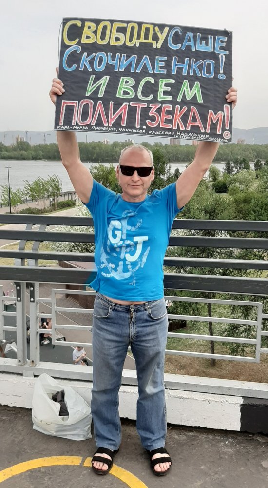 В Красноярске полицейские задержали Александра Капустина, вышедшего на одиночный пикет в поддержку Александры Скочиленко и других политзаключенных. Об этом он сам рассказал ОВД-Инфо.
