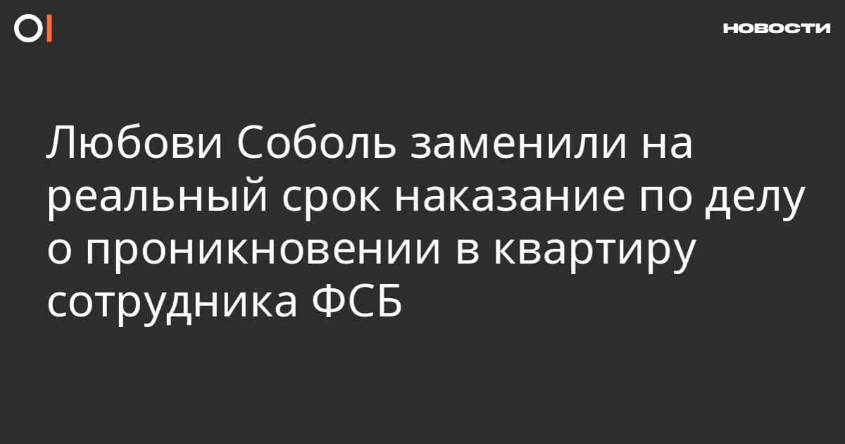 Симоновский районный суд Москвы заменил Любови Соболь наказание по «квартирному делу» с исправительных работ на четыре месяца колонии общего режима. Об этом в своем твиттере сообщил адвокат Владимир Воронин.
