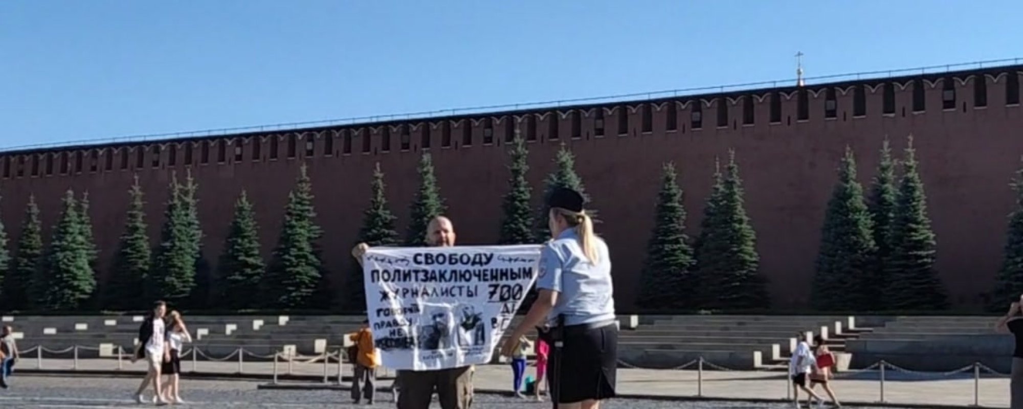 В Москве на Красной площади задержали пикетчика Александра Роганова, который выступил в поддержку политзаключенных и преследуемых журналистов. Об этом сообщает издание Sota.