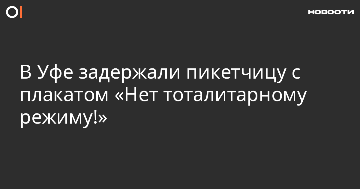 В Уфе задержали пикетчицу Ильмиру Рахматуллину, которая вышла к Гостиному двору с плакатом «Нет тоталитарному режиму!». Об этом ОВД-Инфо сообщила ее сестра.