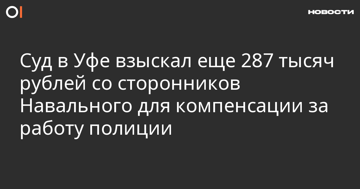 Кировский районный суд Уфы взыскал со сторонников Навального Ольги Комлевой, Лилии Чанышевой и Ильгама Янбердина 287 тысяч рублей по двум искам от Центра хозяйственного и сервисного обеспечения республиканского МВД, который требовал компенсировать затраты на работу полиции во время акций в поддержку Навального 23 и 31 января 2021 года. Об этом Комлева пишет в фейсбуке.