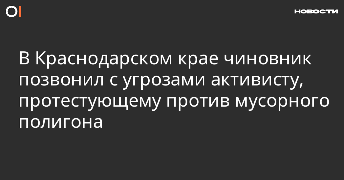 В станице Полтавской Краснодарского края мужчина, представившийся местным чиновников, позвонил с угрозами экоактивисту Виктору Ильину, протестующему против свалки. Об этом сообщается в группе «Живая Кубань» во «ВКонтакте».
