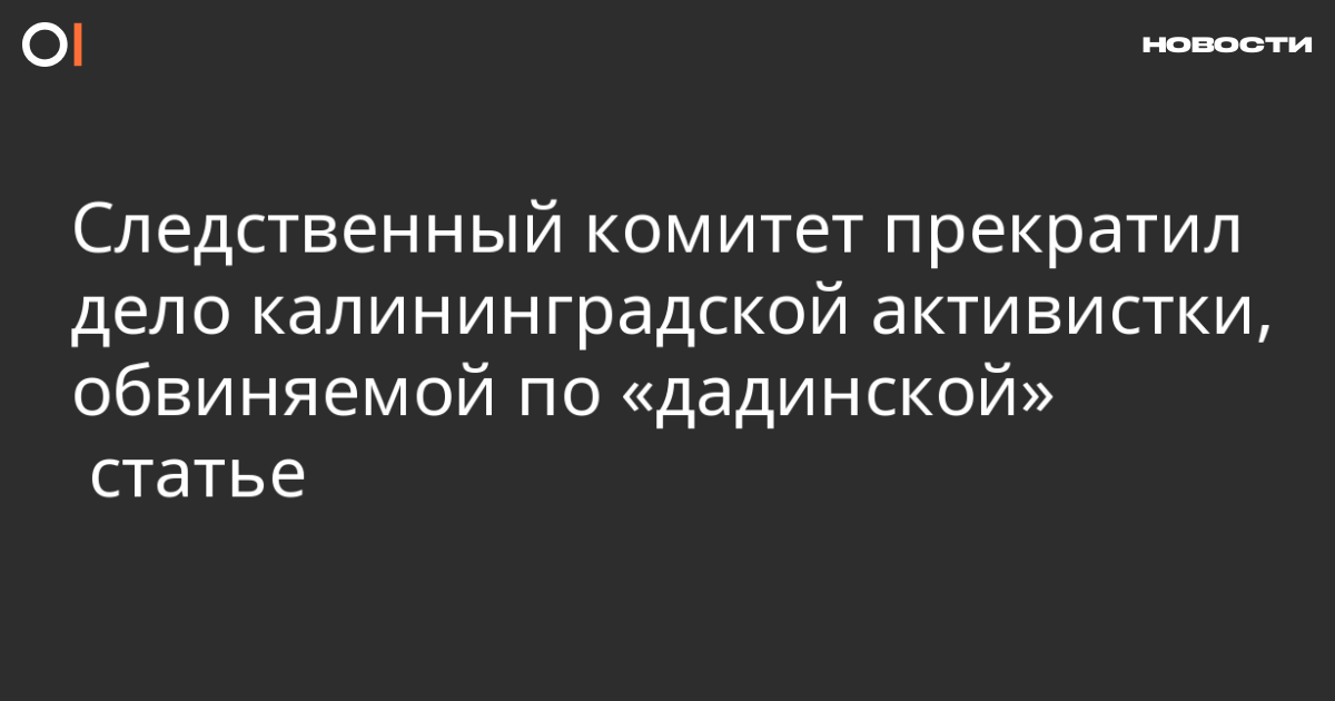 Управление Следственного комитета по Калининградской области 19 сентября постановило прекратить уголовное дело против местной активистки Евгении Федуловой, обвиняемой по «дадинской» статье. Об этом рассказала адвокат от ОВД-Инфо Мария Бонцлер, которая представляет интересы оппозиционерки.