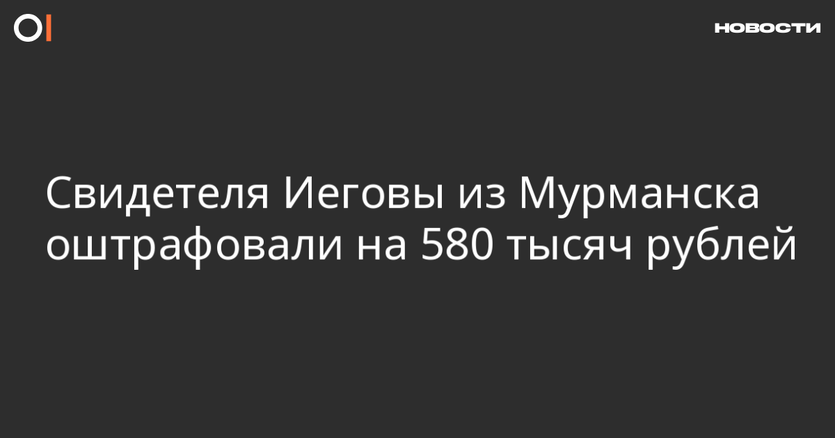 Октябрьский районный суд Мурманска 22 сентября приговорил Свидетеля Иеговы Виталия Омельченко, проводившего собрания верующих, к штрафу в 580 тысяч рублей. Об этом сообщает Информационно-аналитический центр «Сова».