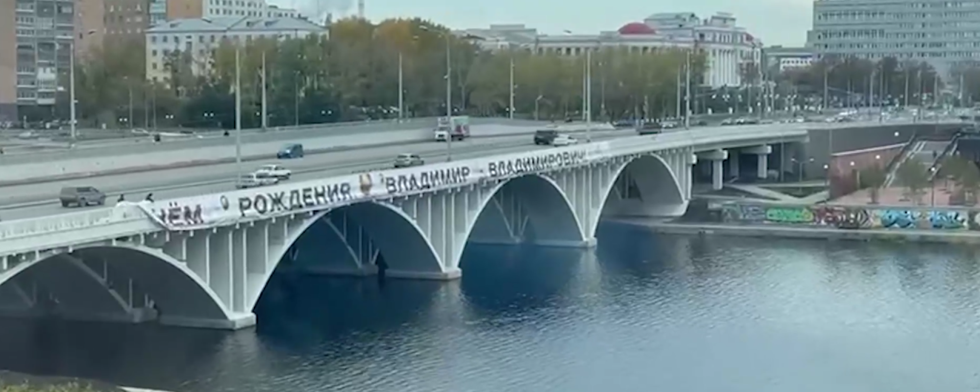 В Екатеринбурге задержали семь человек, повесивших на Макаровском мосту баннер «С днем рождения, Владимир Владимирович!». Об этом пишет местный новостной портал E1.