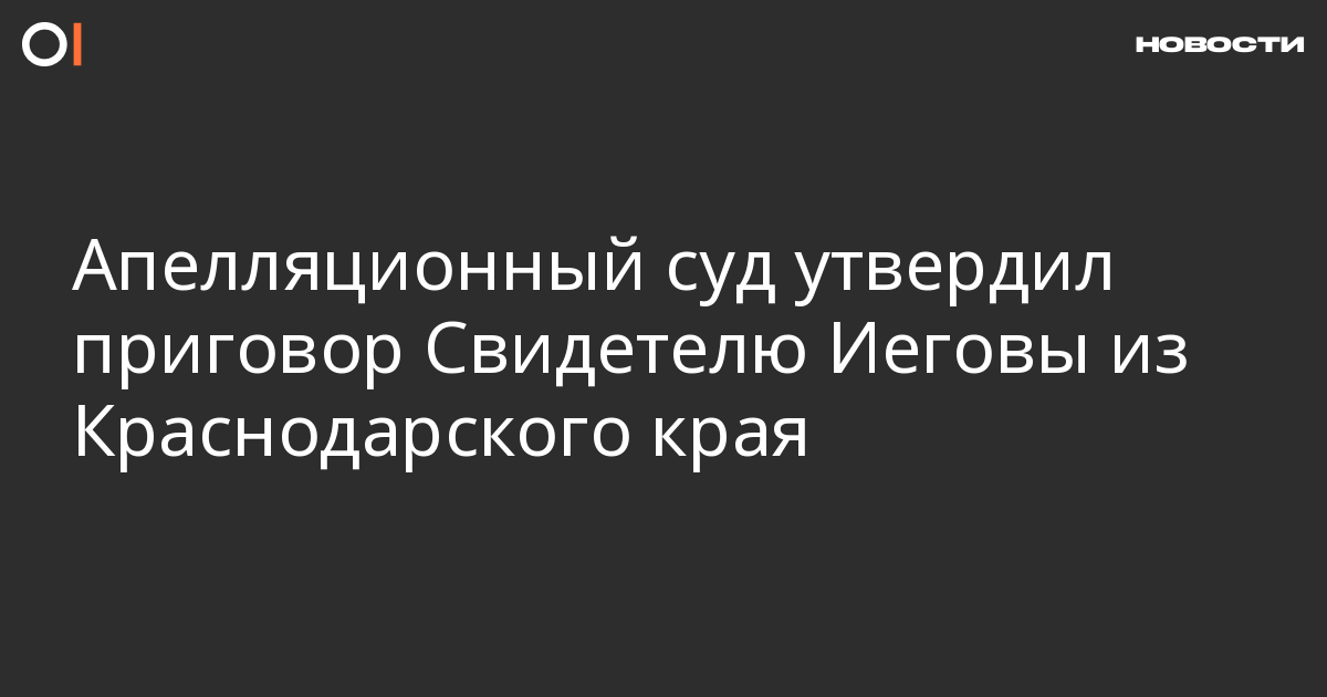 Краснодарский краевой суд 20 октября утвердил приговор Свидетелю Иеговы из станицы Холмской Александру Николаеву. Об этом сообщается на портале, посвященном преследованию верующих в России.