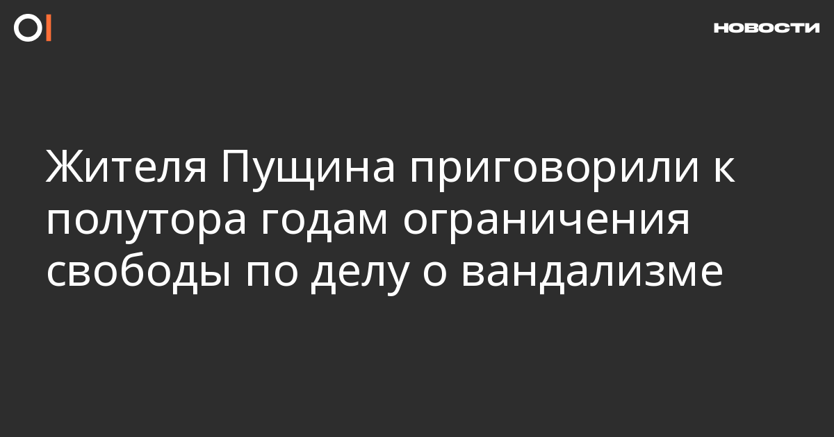 Мировой судья судебного участка № 208 Пущинского судебного района Московской области 7 июля назначил местному жителю Василию Корецкому полтора года ограничения свободы по статье о вандализме (ч. 2 ст. 214 УК). Об этом он сам сообщил ОВД-Инфо, текст приговора опубликован на сайте суда.