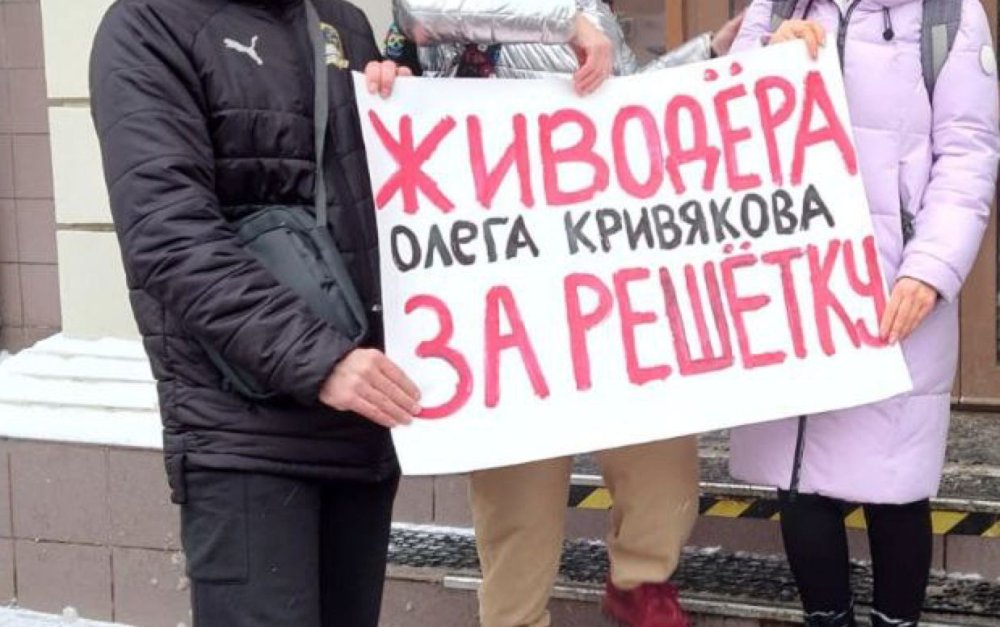 В Черемушкинском районном суде Москвы задержали Алексея Смирнова, который пытался пронести в здание плакат «Живодера Олега Кривякова за решетку». Об этом сообщил адвокат от ОВД-Инфо Евгений Куракин, выехавший на помощь к задержанному.