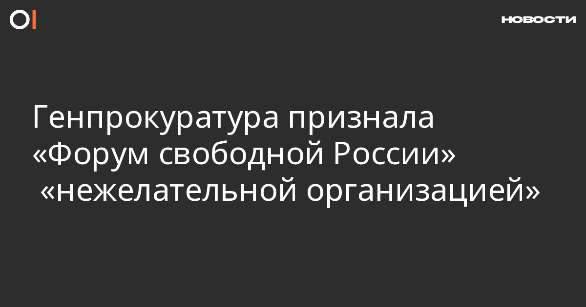 Генеральная прокуратура России признала деятельность «Форума свободной России» «нежелательной» на территории РФ. Соответствующее сообщение появилось в телеграм-канале ведомства.