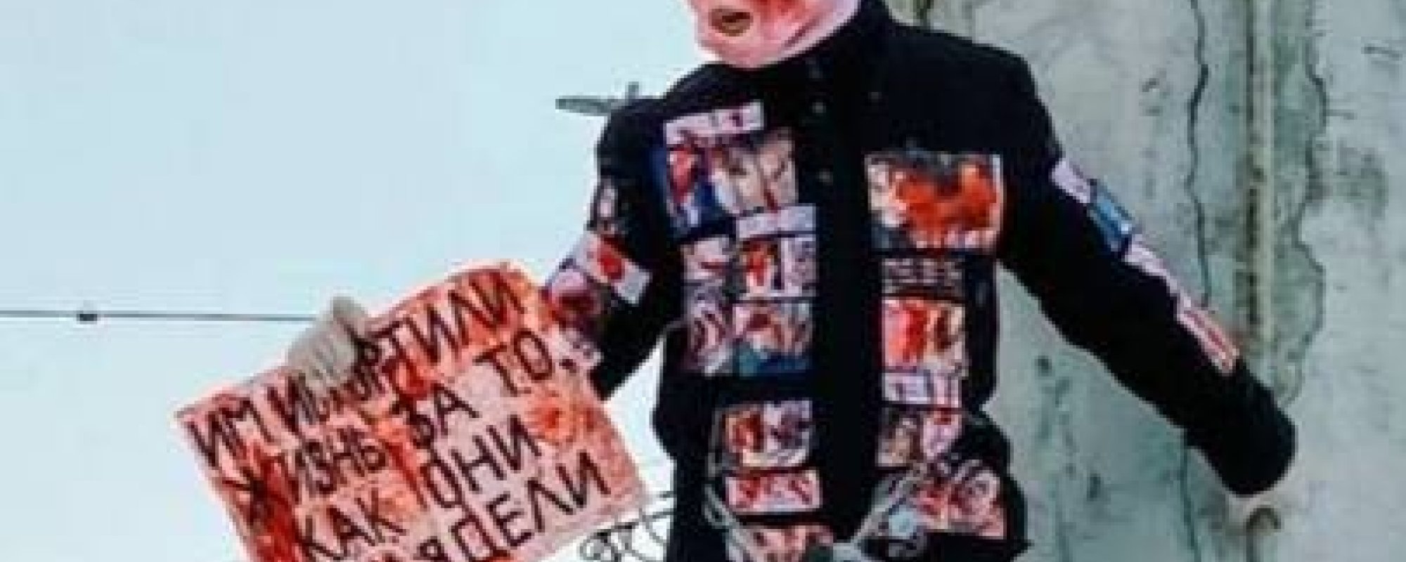 Карасев вчера, 5 февраля, забрался на столб около площади Пушкина с красным плакатом с надписью «Им испортили жизнь за то, как они выглядели». На активисте была белая балаклава, забрызганная красной краской, и черный костюм с фотографиями людей, подвергшихся насилию из-за своего внешнего вида.