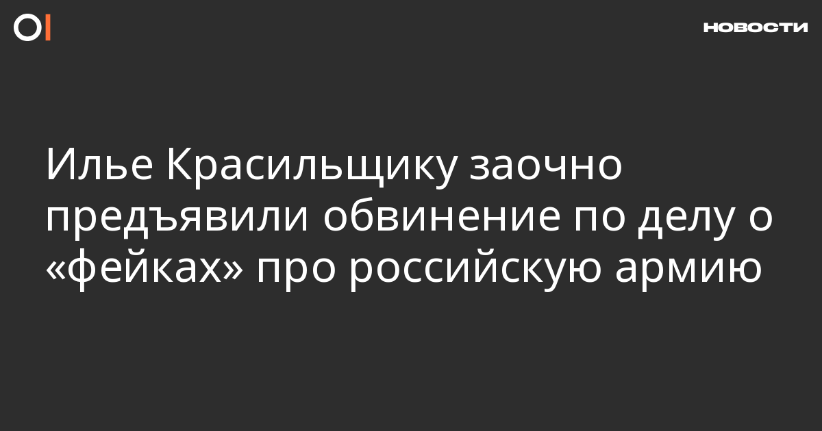 Медиаменеджеру Илье Красильщику заочно предъявили обвинение по делу о распространении «фейков» про российскую армию (п. «д» ч. 2 ст. 207.3 УК). Об этом сообщает адвокат Сергей Бадамшин.