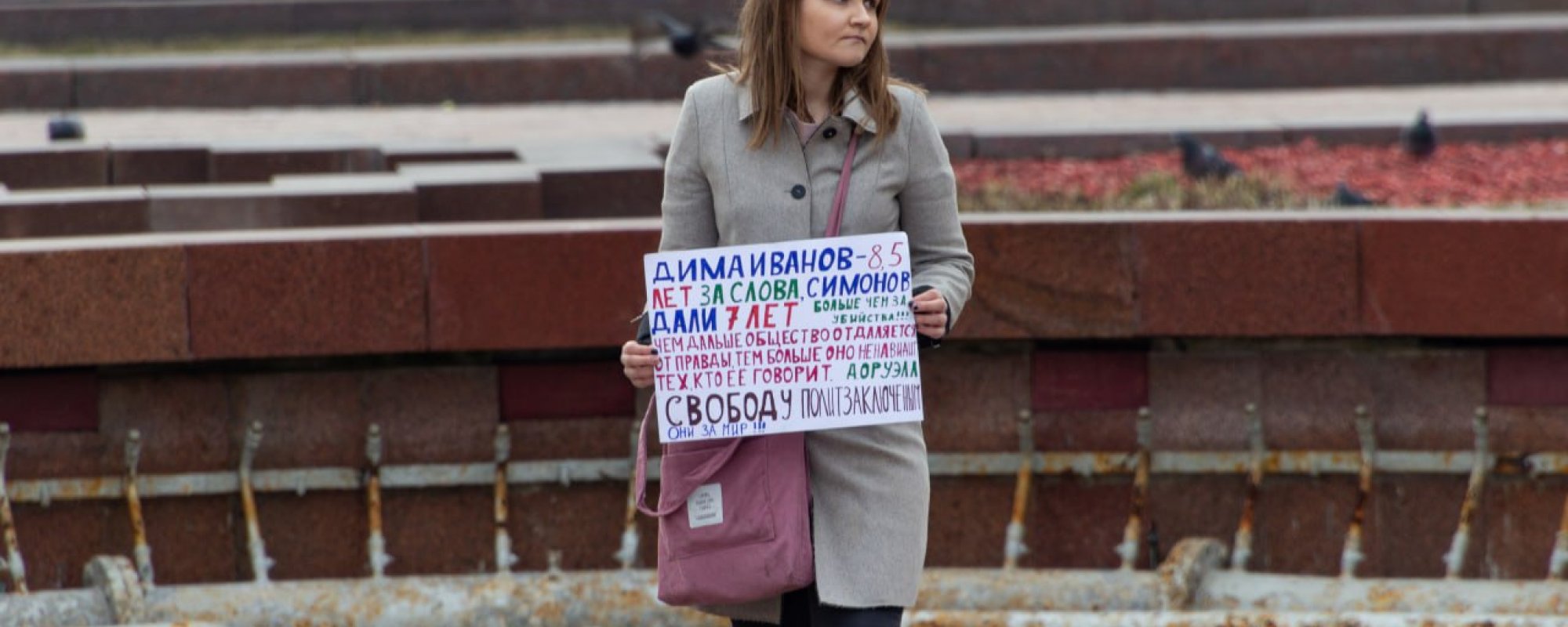 В Новопушкинском сквере Москвы полицейские задержали пикетчицу по имени Алиса — она стояла с плакатом в поддержку Дмитрия Иванова и Михаила Симонова, осужденных по статье о «фейках» про армию. Об этом сообщает SOTA.