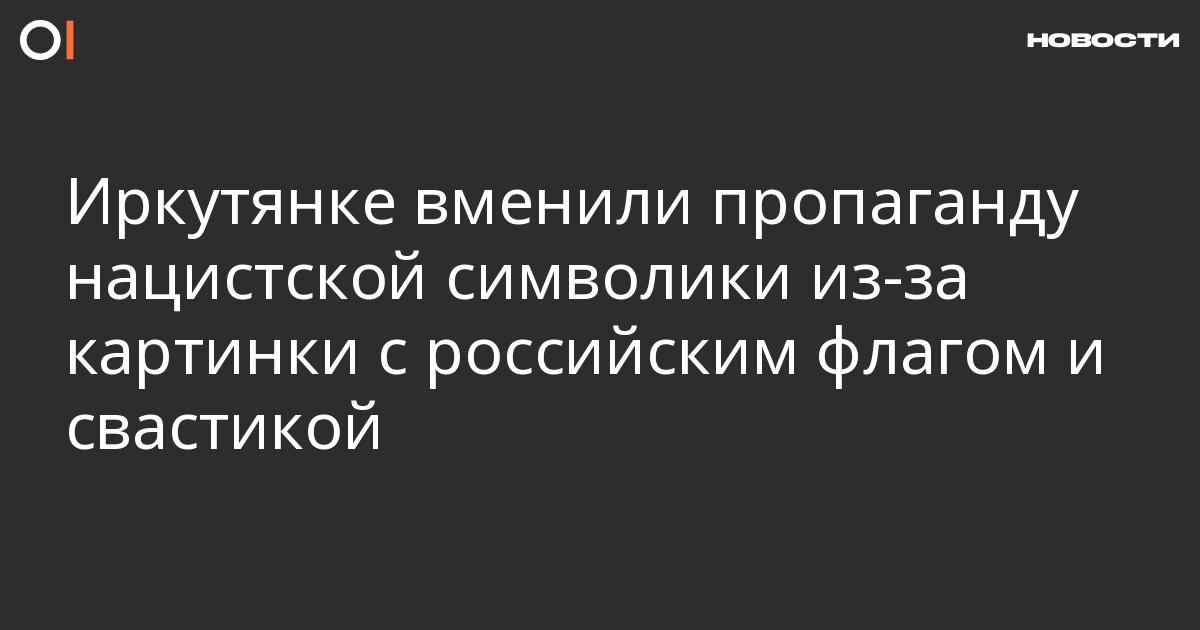 На жительницу Иркутска Ольгу Карчуганову составили протокол о пропаганде нацистской символики (ст. 20.3 КоАП). Поводом стала картинка, на которой флаг нацистской Германии проступает из-под российского флага. Об этом она сама рассказала ОВД-Инфо.