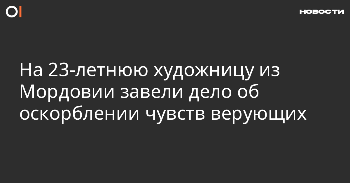 Против 23-летней художницы из Мордовии Вероники Полонской возбудили дело об оскорблении чувств верующих (ч. 1 ст. 148 УК). Об этом сообщает ИА Regnum.