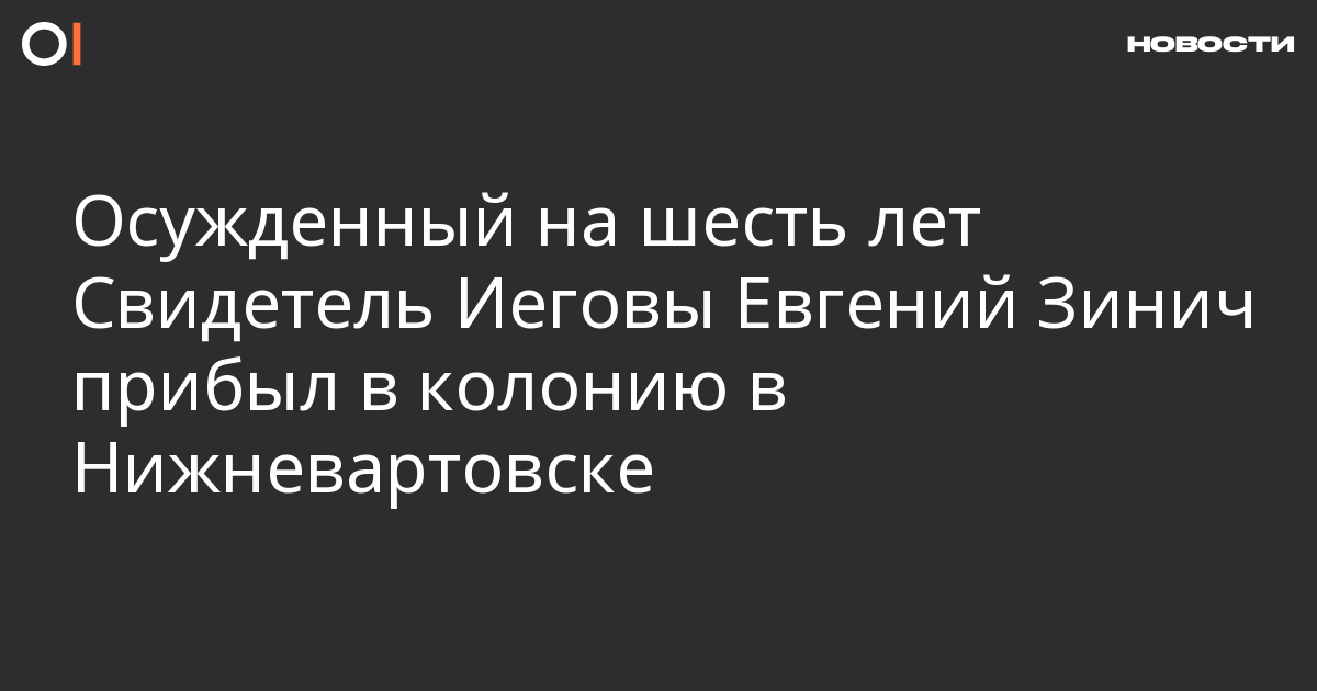 Осужденный на шесть лет лишения свободы Свидетель Иеговы Евгений Зинич прибыл в исправительную колонию № 15 в Нижневартовске. Информация об этом появилась на портале, освещающем преследования верующих.