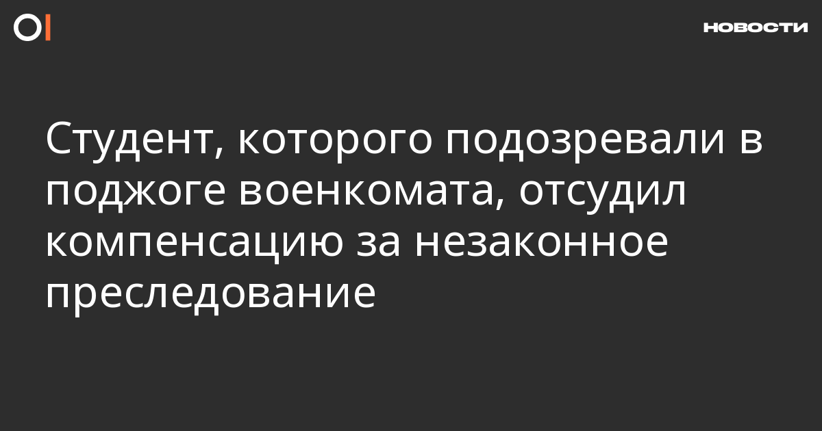 Нижегородский студент Артем Лебедев, которого ранее подозревали в поджоге военкомата, отсудил у государства 100 тысяч рублей компенсации за необоснованное преследование. Уголовное дело против него прекратили из-за отсутствия доказательств. Об этом сообщает новостной портал NN.RU.