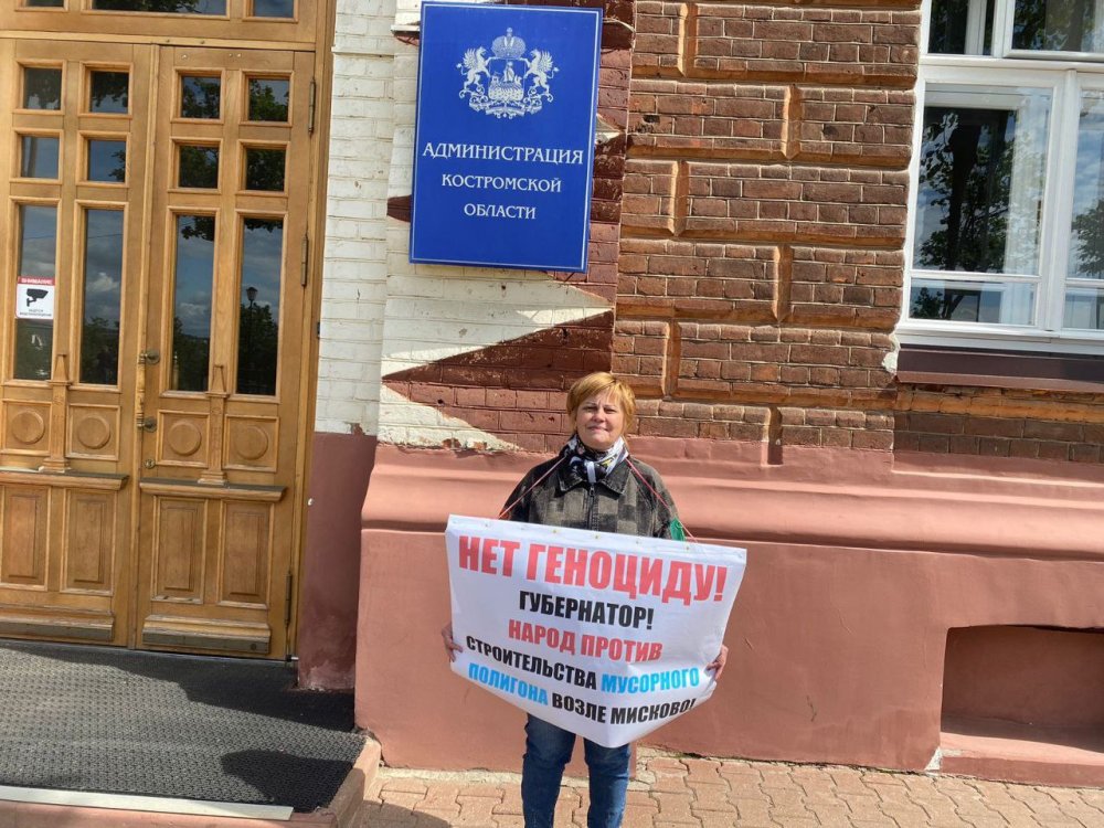 В Костроме силовики задержали Веру Соколову, вышедшую на одиночный пикет против строительства мусорного полигона в поселке Мисково. Об этом ОВД-Инфо сообщила ее знакомая.