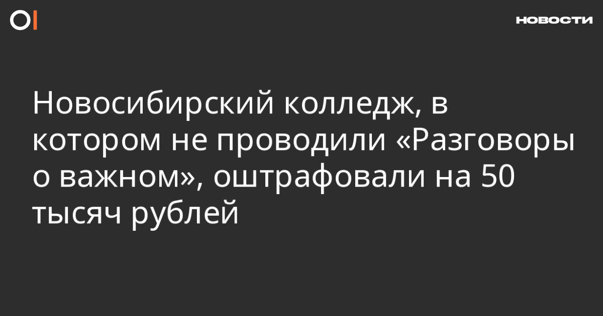 Новосибирский частный колледж «Новоколледж», в котором не проводили «Разговоры о важном», оштрафовали на 50 тысяч рублей после проверки прокуратуры. Об этом пишет «7×7».