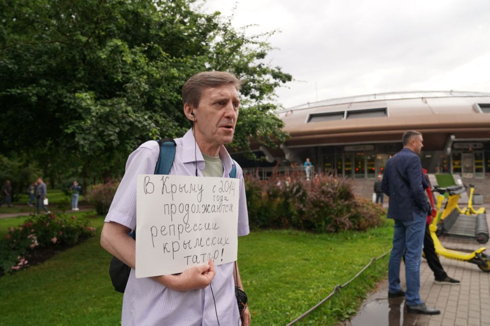 В Петербурге задержали гражданского активиста Виталия Иоффе и еще одну девушку, которые провели серию одиночных пикетов против репрессий крымских татар. Об этом ОВД-Инфо сообщили сами задержанные.