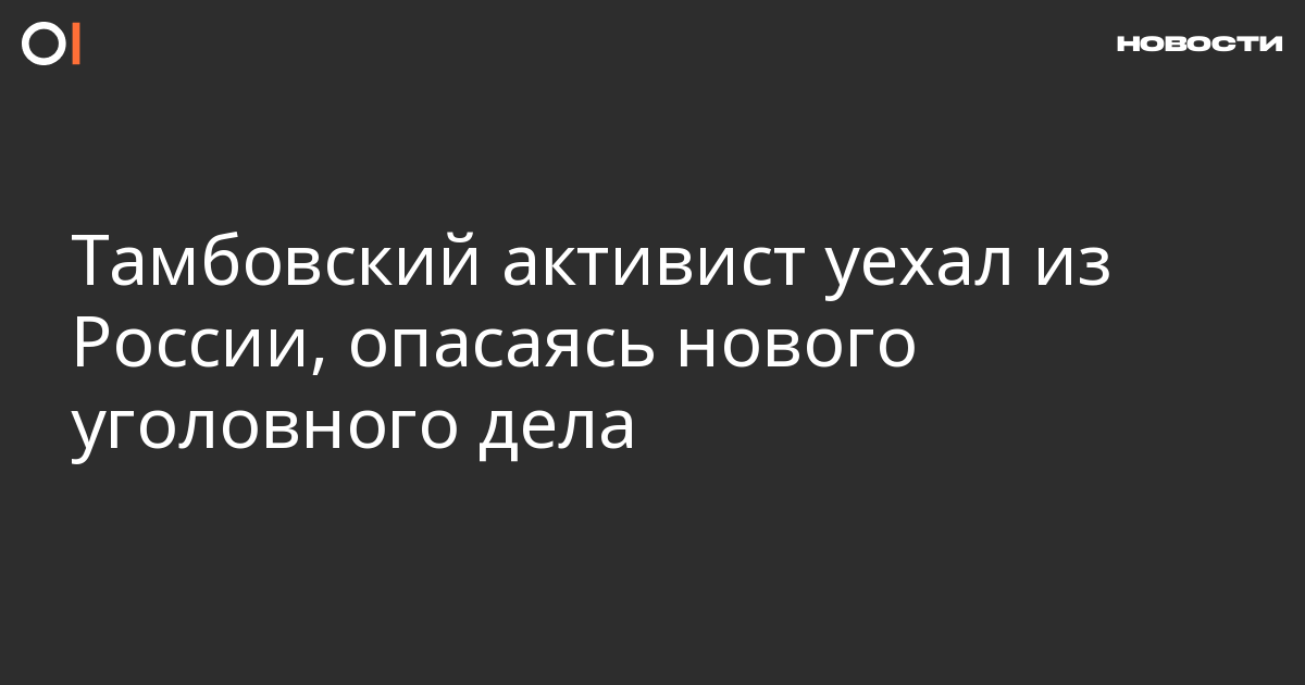 Тамбовский активист Андрей Поляков уехал из России из-за рисков возбуждения нового уголовного дела. Об этом он рассказал местному изданию «Твердый знак».