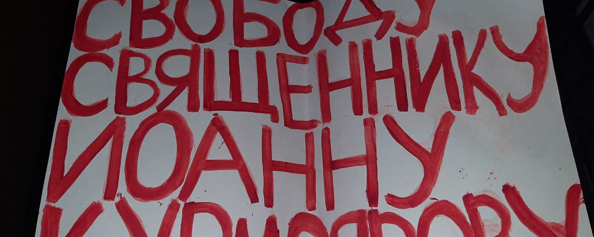 В Петербурге задержали Дмитрия Кузьмина, проводившего у Казанского собора одиночный пикет с плакатом «Свободу священнику Иоанну Курмоярову». Об этом он сам сообщил ОВД-Инфо.