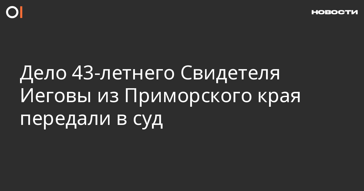 В Приморском крае дело против 43-летнего Свидетеля Иеговы передали в суд для рассмотрения по существу. Об этом сообщает пресс-служба СК по региону.
