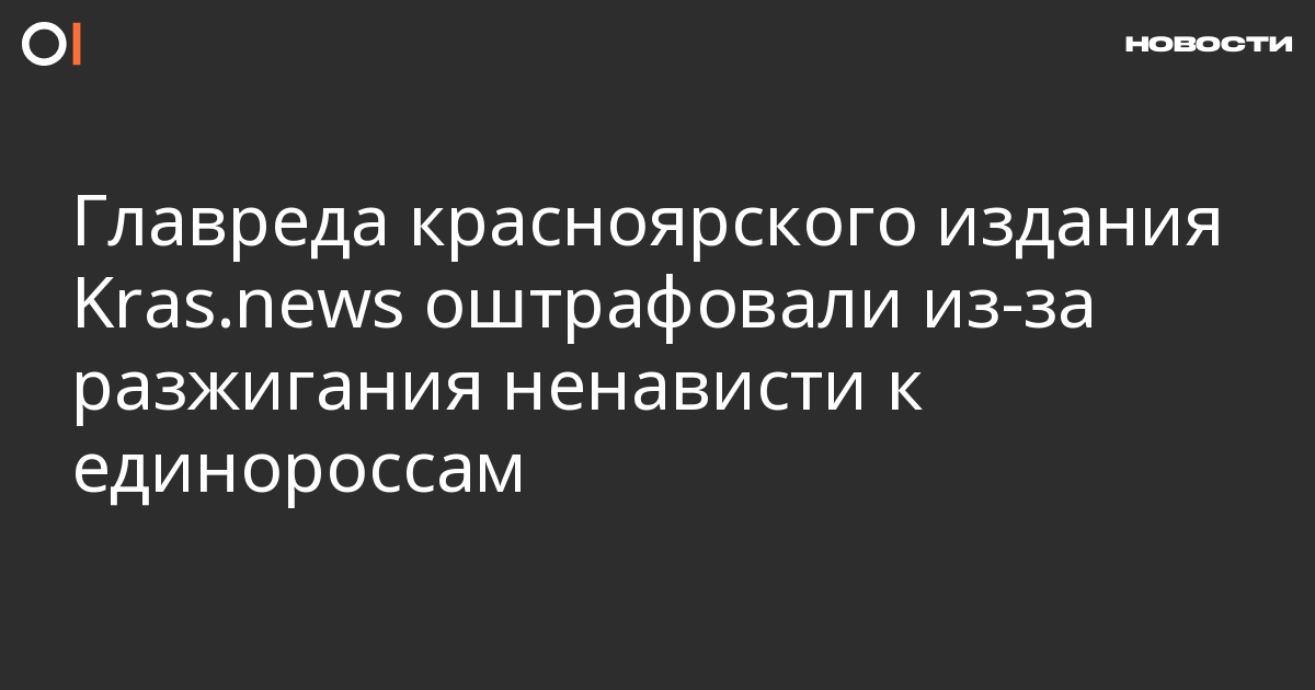 Центральный районный суд Красноярска оштрафовал главного редактора местного издания Kras.news Дмитрия Полушина на 20 тысяч рублей, признав его виновным в разжигании ненависти и вражды к членам партии «Единая Россия» (ст. 20.3.1 КоАП). Об этом сообщает «Коммерсантъ».