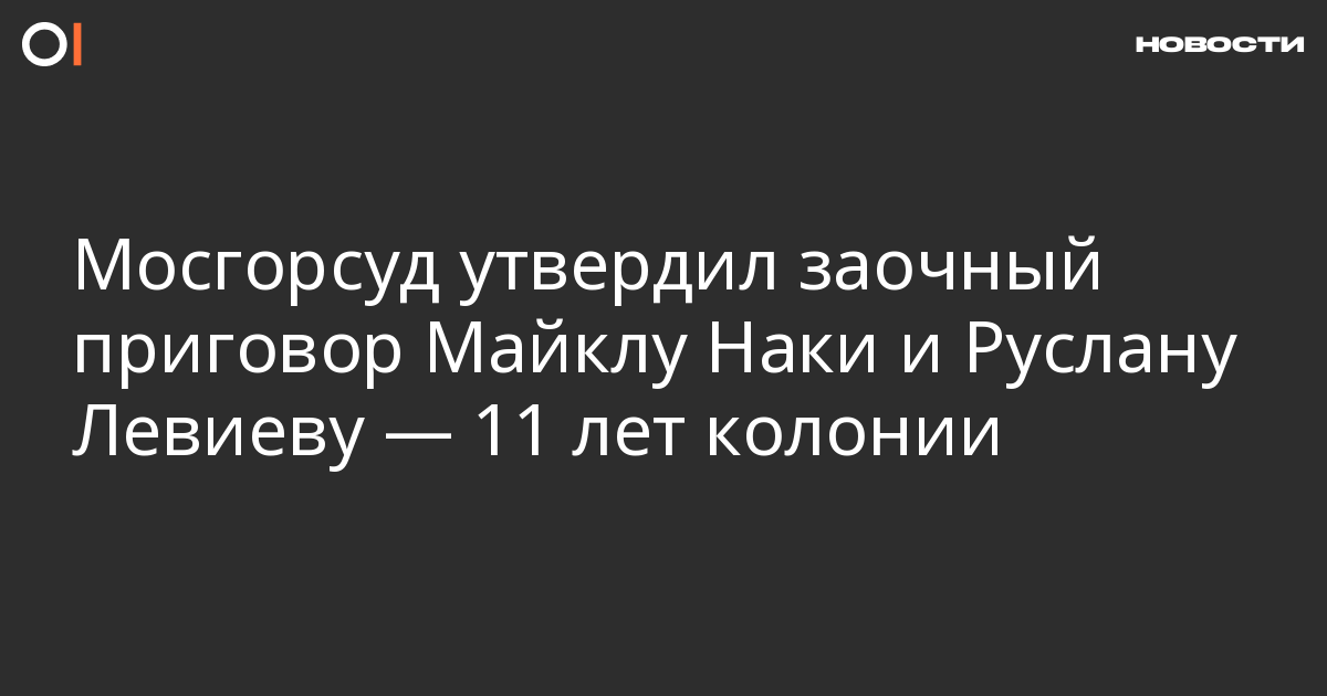 Мосгорсуд утвердил приговор блогеру Майклу Наки и основателю Conflict Intelligence Team Руслану Левиеву по статье о распространении «фейков» про российскую армию с искусственным созданием доказательств обвинения (п. «в» ч. 2 ст. 207.3 УК). Об этом сообщает SOTAvision.