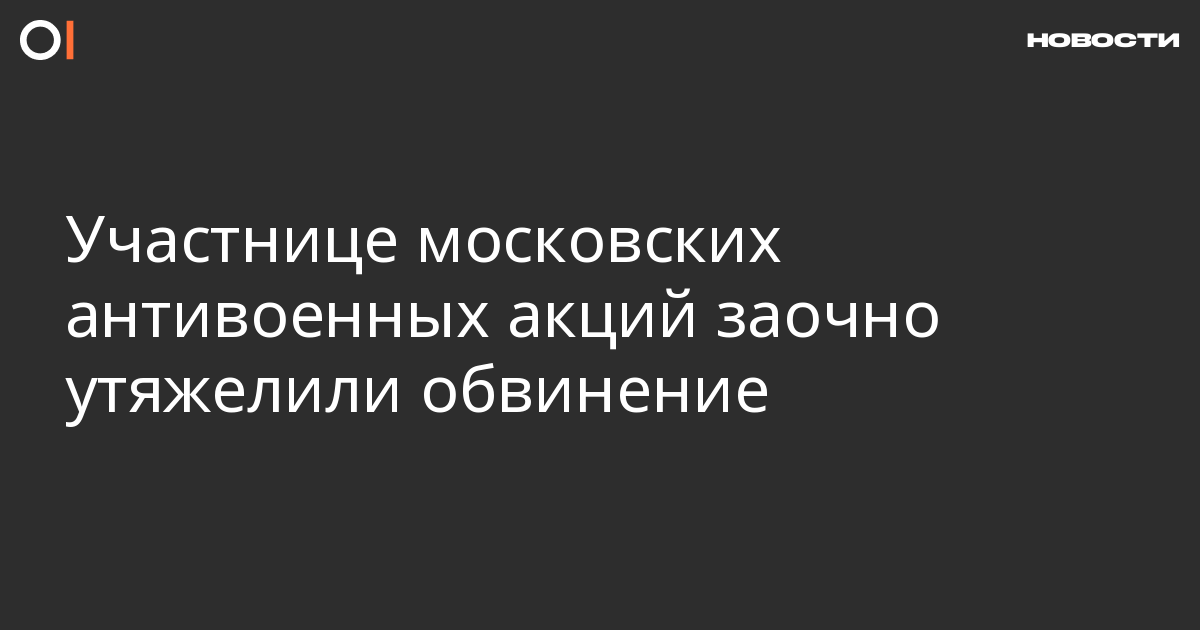 Уехавшей из России москвичке Анастасии Агеевой заочно предъявили обвинение в распространении «фейков» про российскую армию по мотивам ненависти (п. «д» ч. 2 ст. 207.3 УК). Ранее ей вменяли более легкую ч. 1 статьи о военных «фейках». Об этом сообщила ее адвокат от ОВД-Инфо Евгения Григорьева.