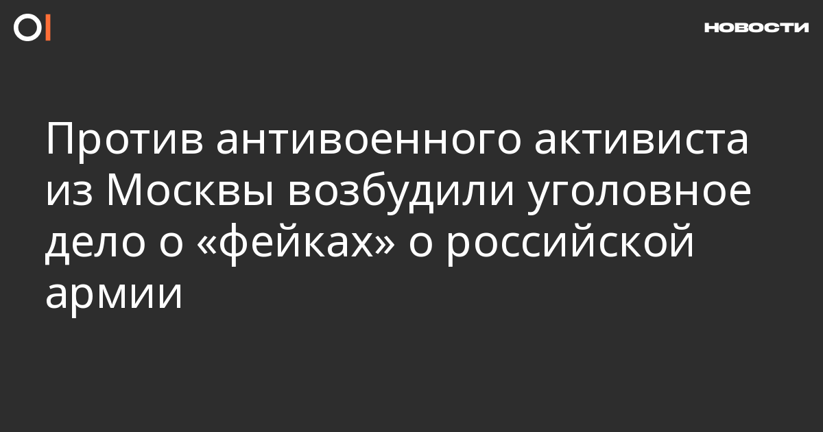 Против антивоенного активиста из Москвы возбудили уголовное дело о «фейках» о российской армии по мотивам политической ненависти или вражды (п. «д» ч. 2 ст. 207.3 УК). Об этом он сам сообщил ОВД-Инфо.