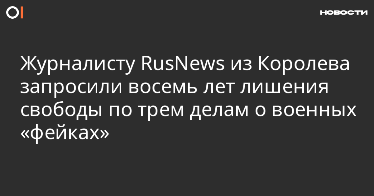 На прениях в Королевском городском суде Московской области гособвинитель запросил восемь лет лишения свободы по трем делам о военных «фейках» для журналиста RusNews и автора телеграм-канала «Честное Королёвское!» Романа Иванова. Об этом сообщает его адвокат от ОВД-Инфо.