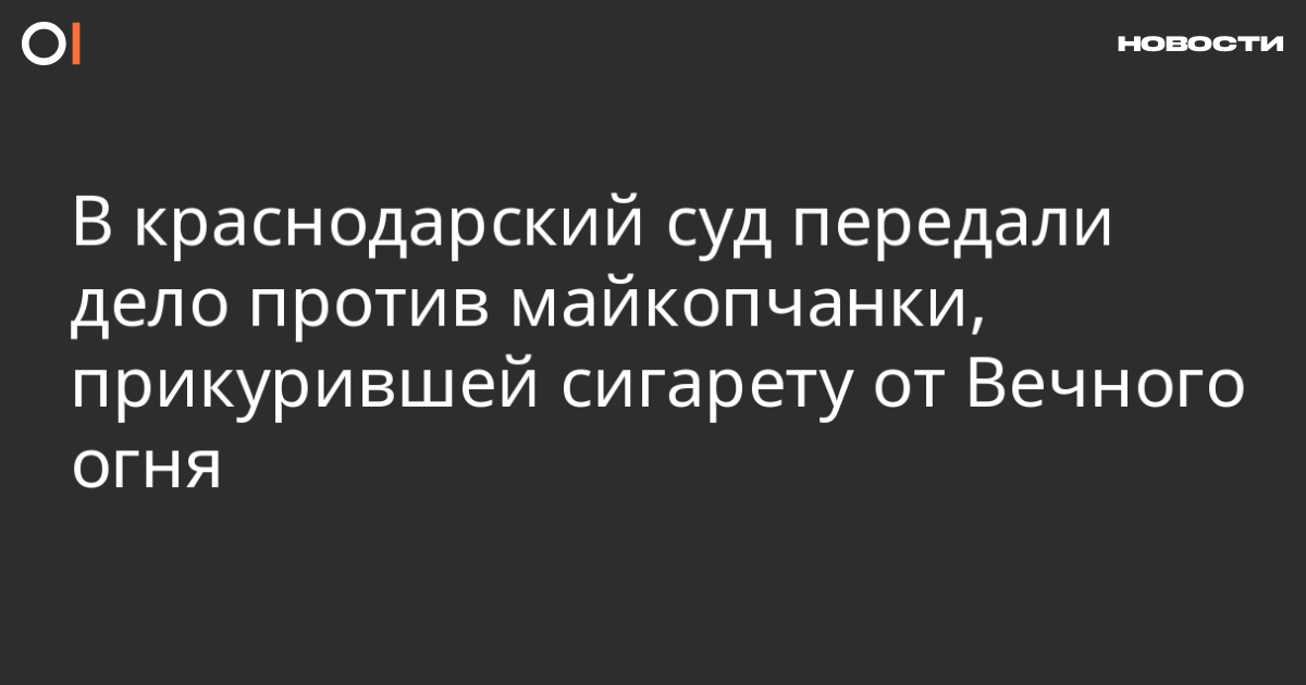 СК по Краснодару отчитался о завершении расследования дела о прикуривании от Вечного огня сигареты, возбужденного против 47-летней уроженки Майкопа (Адыгея).