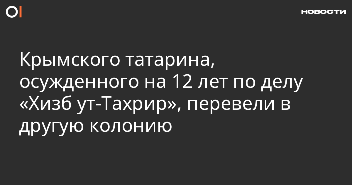 Крымского татарина Эскендера Абдулганиева, осужденного на 12 лет по делу о причастности к «Хизб ут-Тахрир», перевели из ИК-41 Кемеровской области в ИК-29 в Кемерово. Об этом сообщает «Крымская солидарность» со ссылкой на мать заключенного Эмине Абдулганиеву.