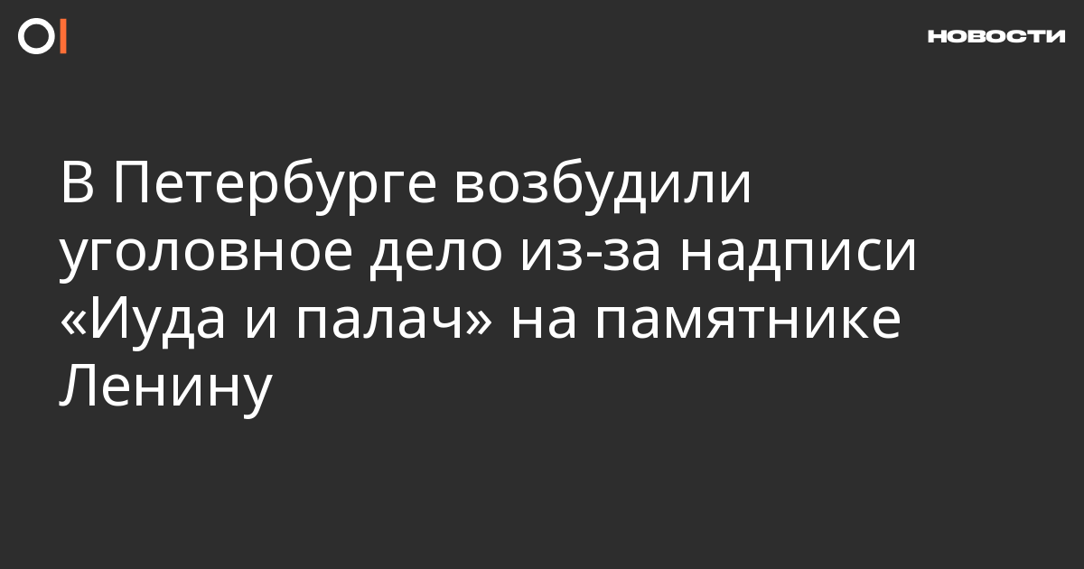 В Петербурге возбудили уголовное дело о вандализме (ст. 214 УК) из-за надписи «Иуда и палач» на памятнике Владимиру Ленину в парке Красное Село, сообщает «Фонтанка».