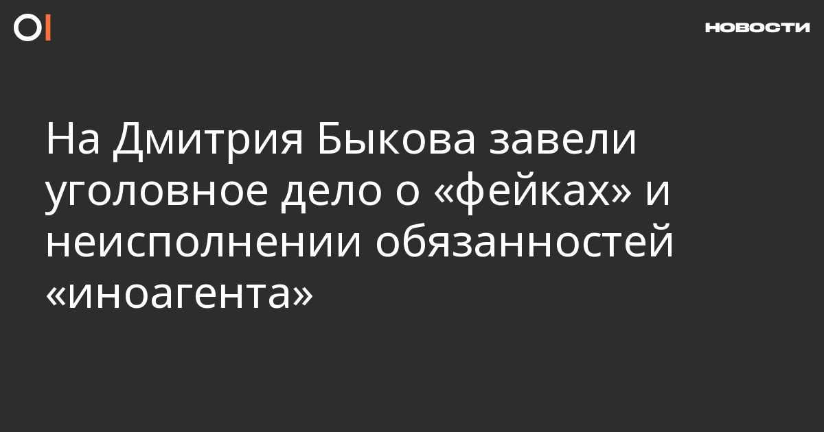 На писателя и журналиста Дмитрия Быкова завели уголовное дело по статьям о распространении «фейков» про российскую армию по мотиву ненависти (п. «д» ч. 2 ст. 207.3 УК) и неисполнении обязанностей «иноагента» (ч. 2 ст. 330.1 УК). Об этом сообщает московский СК.