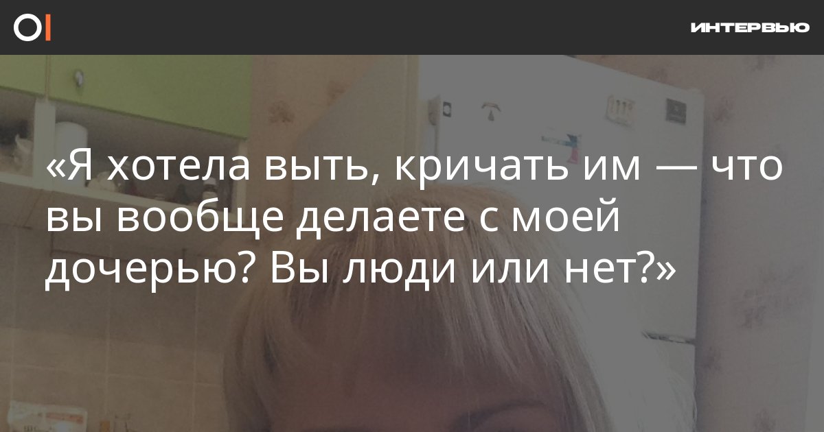 Потом 16-го числа был суд, дали арест. Я когда на апелляционном суде увидела по видеосвязи, в каком она состоянии, я пришла в ужас. Я просто хотела встать, выть, кричать им — что вы вообще делаете с моей дочерью? Вы люди или нет?