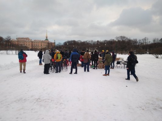 В Петербурге полиция потребовала убрать стол и стулья на месте проведения собрания инициативной группы на Марсовом поле. Туда пришли также провокаторы из прокремлевского движения НОД.