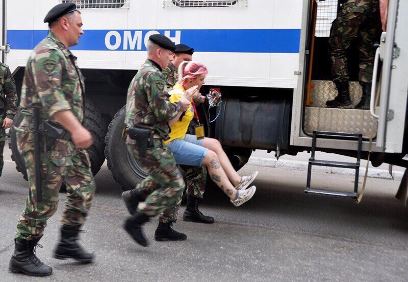 Задержание Яны Захаровой на акции «Он нам не царь»