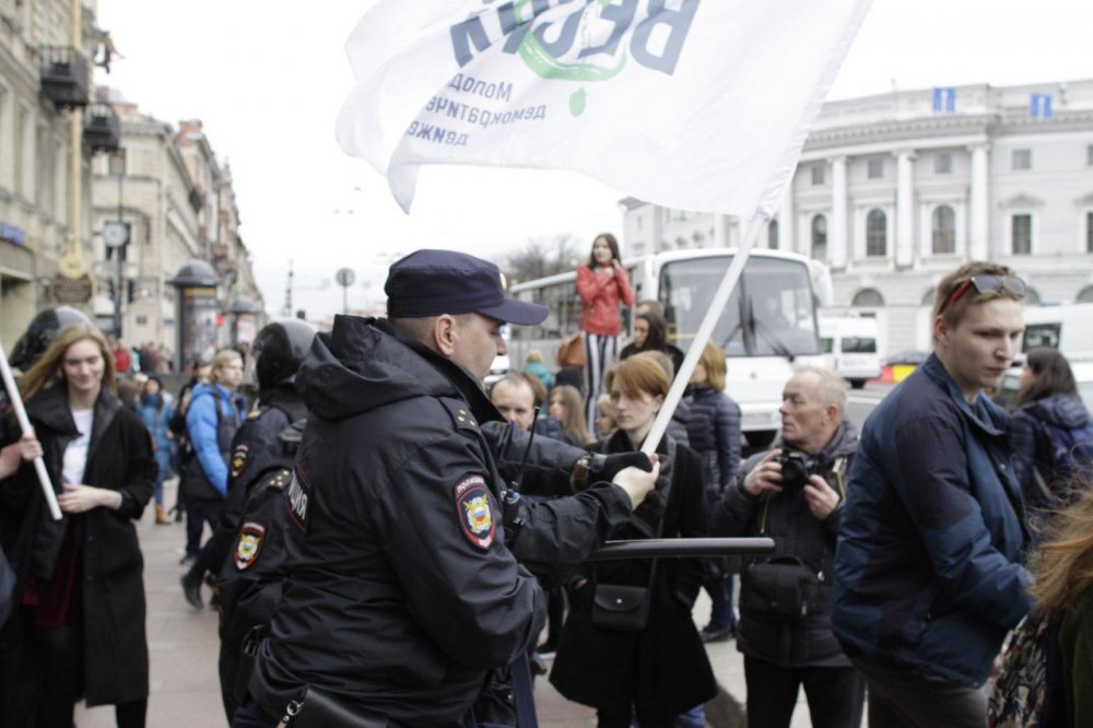 Активист «Весны» в Петербурге Александр Верещагин арестован на двое суток по статье о неповиновении сотруднику полиции (ст. 19.3 КоАП) и оштрафован на 10 тысяч рублей по статье о нарушении порядка проведения акции (ч. 5 ст. 20.2 КоАП).