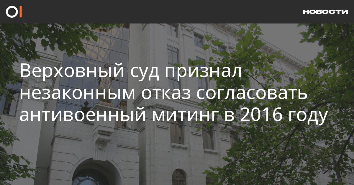 Судебная коллегия по административным делам Верховного суда России частично удовлетворила жалобу Сергея Давидиса на незаконный отказ согласовать антивоенный митинг в 2016 году. Интересы Давидиса представлял юрист правозащитного центра «Мемориал» Денис Шедов.