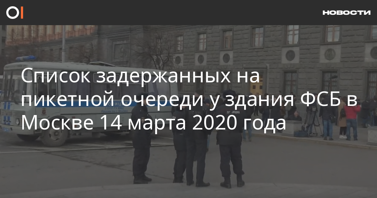 14 марта 2020 года в Москве люди встали в очередь у здания ФСБ на одиночные пикеты против политических репрессий. По данным на 22:00, задержано более 50 человек. Публикуем списки имен.