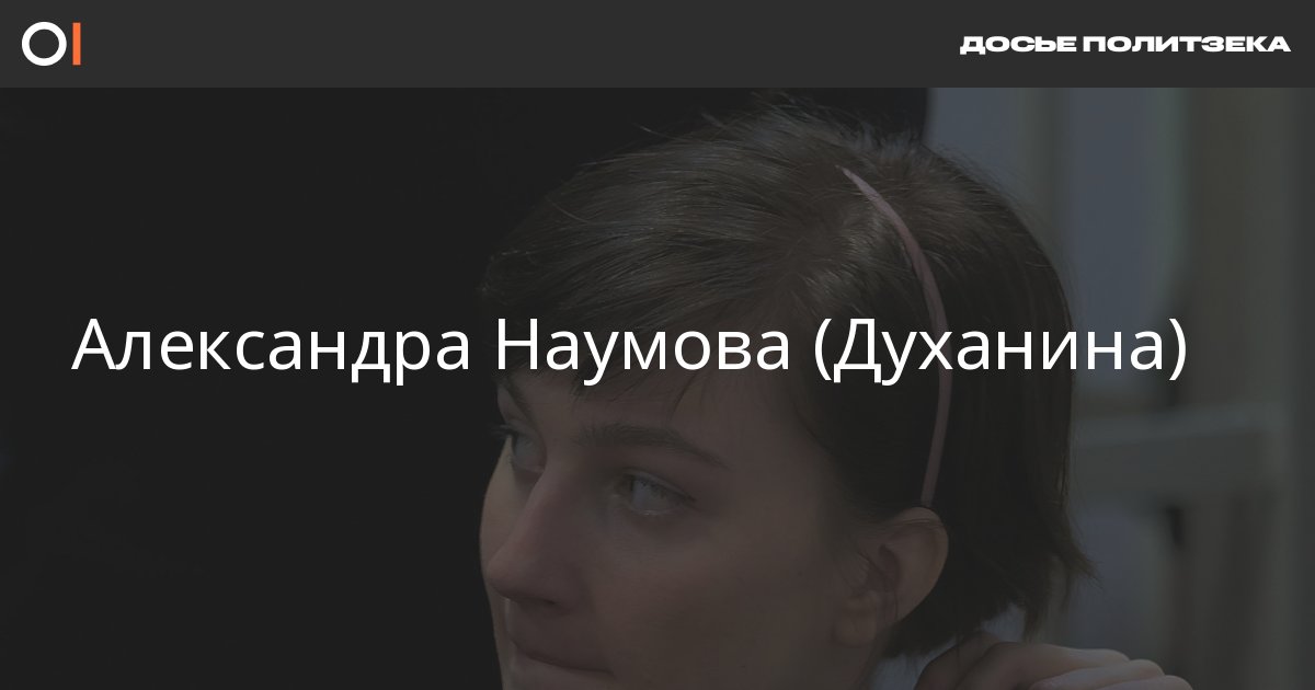 Александра Духанина (выйдя замуж, взяла фамилию Наумова) участвовала в деятельности движения «Оккупай», в акциях в защиту Цаговского леса. Оказалась одной из первых задержанных по «Болотному делу». Ее обвинили в участии в массовых беспорядках на Болотной площади 6 мая 2012 года и в применении насилия к омоновцам в виде закидывания их камнями или кусками асфальта и бутылками. В ходе очной ставки с так называемым потерпевшим Антоном Суторминым выяснилось, что никаких телесных повреждений он не получил и боли не испытал (он заявил, что обвиняемая облила его квасом, что он воспринял как оскорбление). В обвинительном заключении говорится, что Духанина «не менее 8 раз прицельно бросила в сотрудников полиции камни и фрагменты асфальтового покрытия, а также пустую бутылку», хотя никаких данных о том, откуда взялось это число бросков, нет. Нет и безусловных доказательств того, что в так называемых потерпевших Антона Сутормина и Алексея Зелянина (он вообще не считает себя потерпевшим от кого-либо из обвиняемых) попала именно Духанина.Прокуроры в прениях попросили приговорить Наумову к шести годам лишения свободы в колонии общего режима. Защита призывала оправдать ее. Замоскворецкий суд приговорил Наумову к трем годам трем месяцам лишения свободы условно с испытательным сроком три года. Мосгорсуд оставил решение без изменений. 4 июля 2016 года с Наумовой снята судимость и условный срок — на полгода раньше, чем должно было завершиться отбытие наказания.