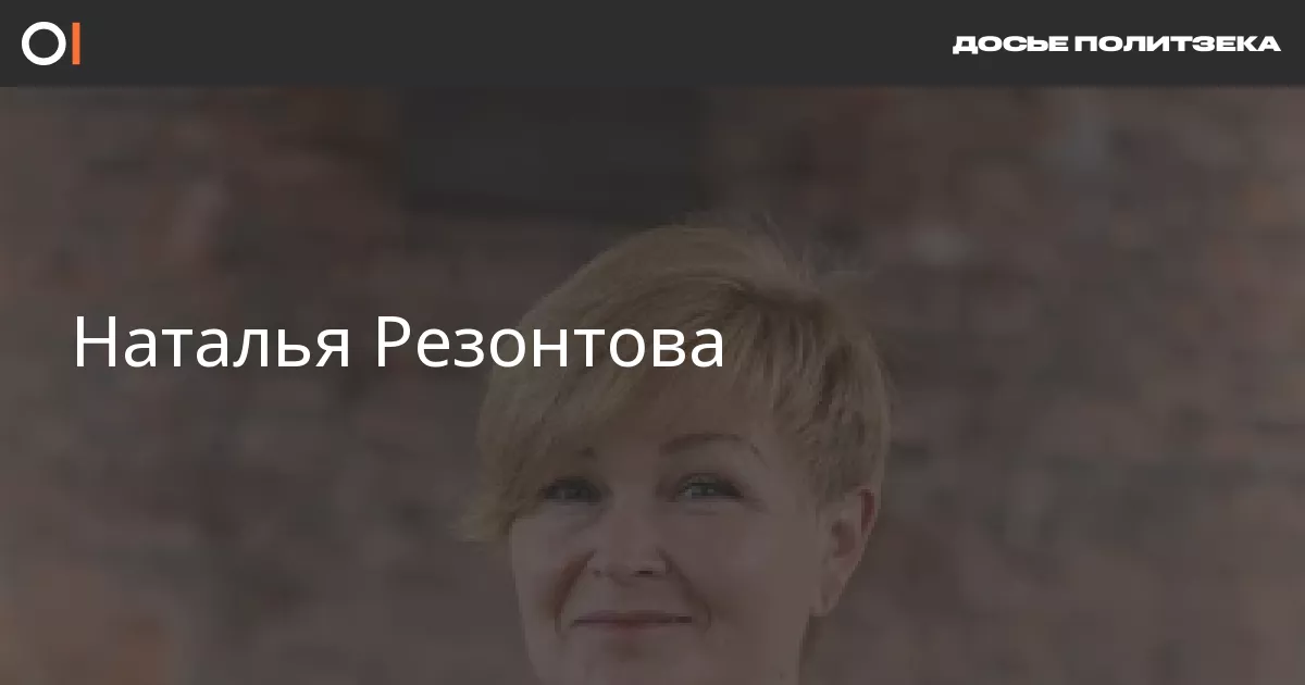 Журналист, гид-экскурсовод, редактор, художник-любитель. В 2020 году заняла второе место на выборах в городскую думу от «Яблока», проиграв в своем округе кандидату от «Единой России». 30 января 2021 года дома у Резонтовой прошел обыск по делу о нарушении санитарно-эпидемиологических правил в связи с акцией в поддержку Алексея Навального 23 января. 1 марта Резонтовой предъявили обвинение, на следующий день избрана мера пресечения в виде запрета определенных действий. 24 марта 2022 года Резонтовой ужесточили меру пресечения, поместив под домашний арест. 12 августа ей вновь назначили запрет определенных действий. 14 ноября Резонтову приговорили к полутора годам ограничения свободы.