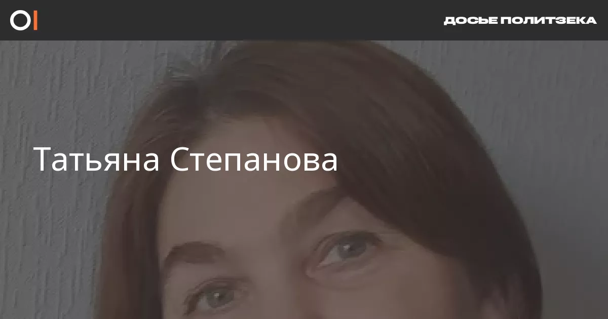 Жительница Ленинградской области. Работала на заводе. 22 марта 2023 года дома у Степановой прошел обыск, ее задержали. 24 марта ей избрали меру пресечения в виде запрета определенных действий по обвинению в участии в деятельности экстремистской организации.