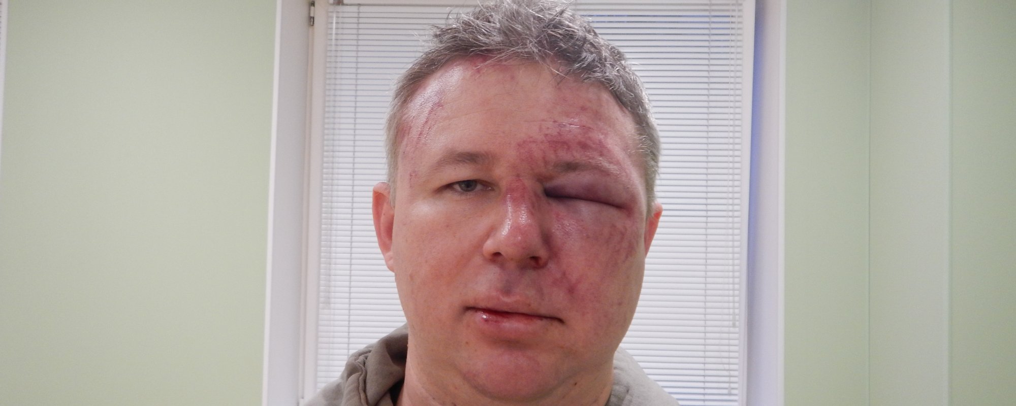 Внезапно избиение было прервано шагами спускающихся сверху людей. Трое мужчин тут же вышли во двор, бросив меня в подъезде. Жильцы забрали меня к себе. Я даже не помню, как оказался у них — видимо, уже был немножко в несознанке. В их квартире я умылся, и после этого в дверь стали звонить. Я рассудил, что эти люди стали меня искать и пошли по этажам. Из этого я делаю вывод, что это были не титушки, а скорее всего опера. Били они меня профессионально, и если бы первый удар в висок пришелся не по касательной, он вполне мог бы привести к летальному исходу.