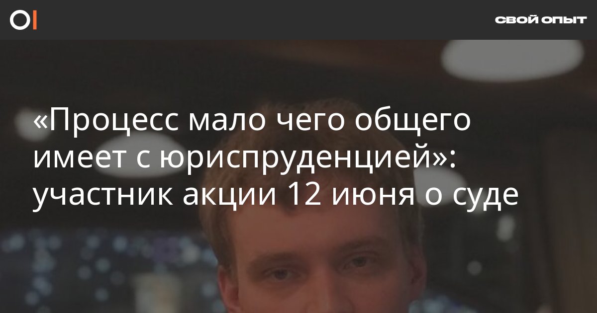 Юрист Олег Кондратов — один из задержанных на митинге 12 июня 2017 года в Москве. Самостоятельно защищая себя на двух судебных заседаниях, он столкнулся с подсказками судьи сотрудникам полиции, спорами об Алексее Навальном и приобщением ходатайства как оказанием услуги.